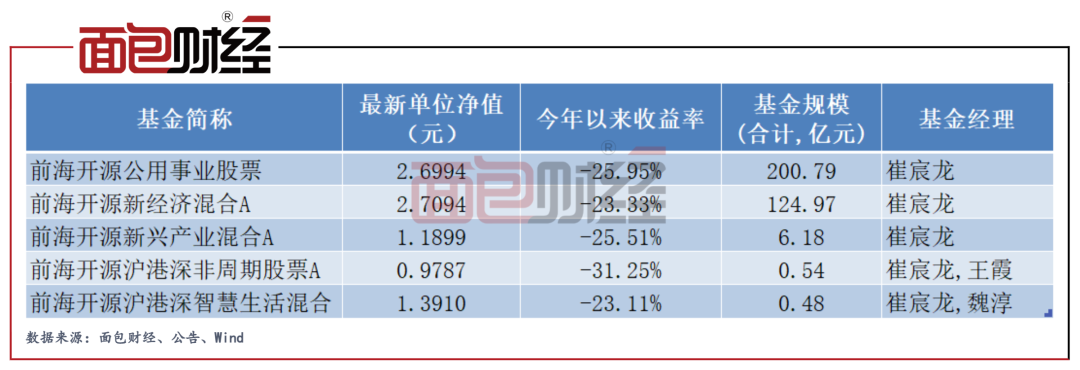 受益于新能源板块的走强,崔宸龙在任职基金经理不到2年的时间内成为前海开源的明星基金经理。资料显示,崔宸龙当前在管产品共有5只,管理总规模约330亿元,约占前海开源基金总规模的四分之一。