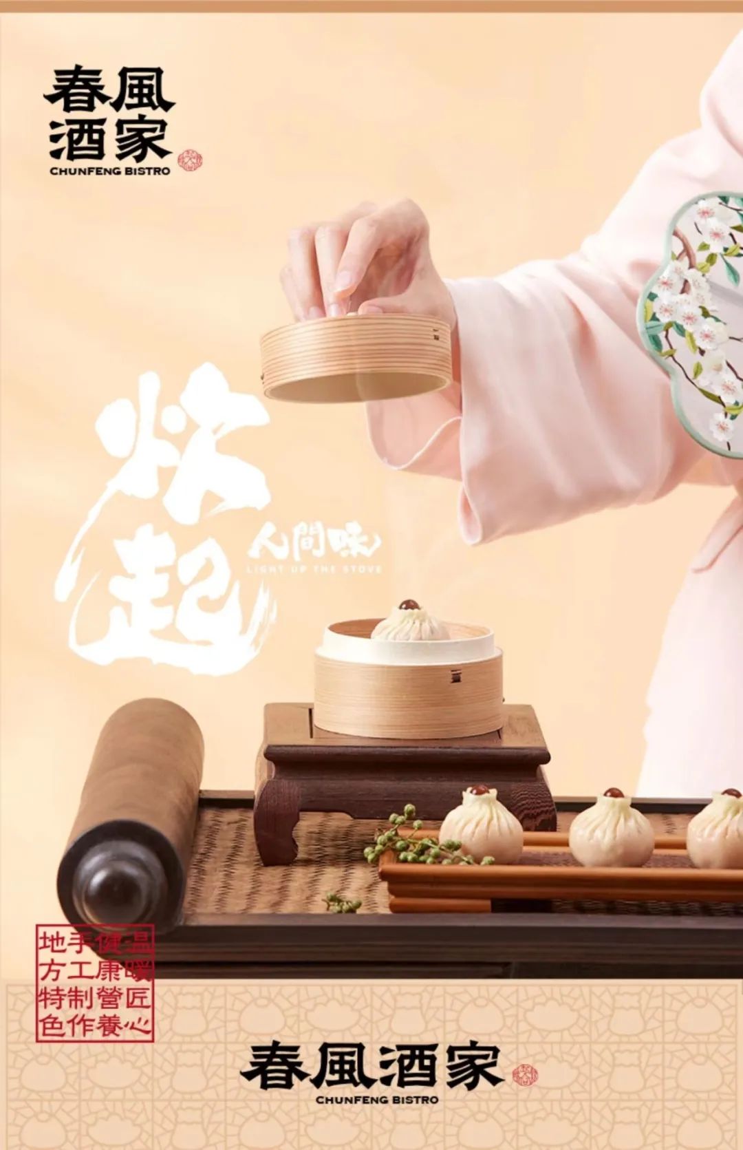 春风酒家则以“宋代美学”为品牌设计理念,在包装上使用了茶桌、笼屉等传统古风元素。