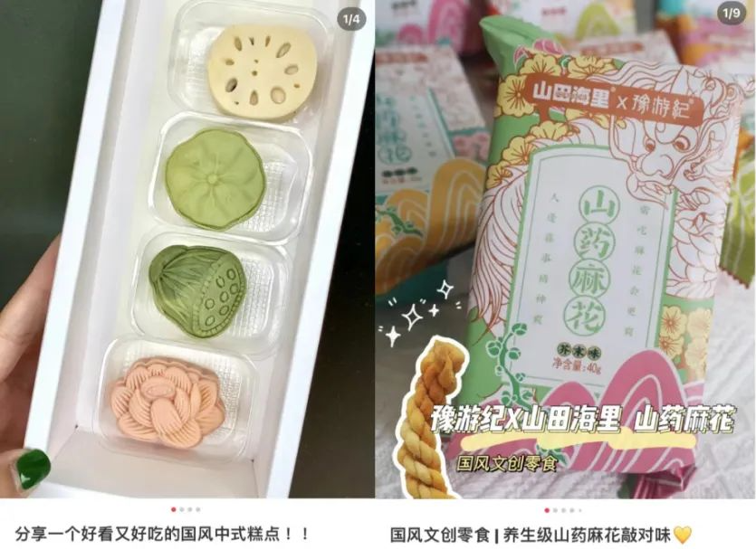 国风零食;图片来源:小红书博主:@叫我食物君、@瓶瓶不吃宵夜