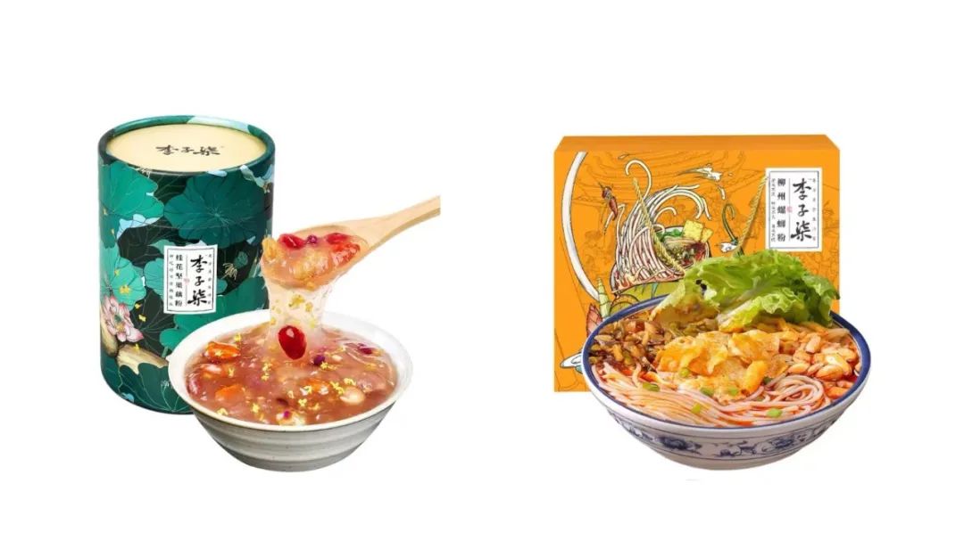 李子柒品牌的桂花坚果藕粉、李子柒螺狮粉;图片来源:李子柒天猫旗舰店