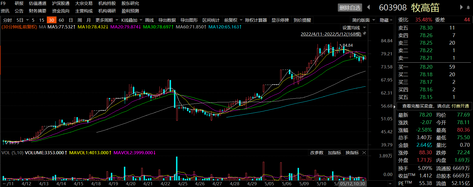 在五一长假一枝独秀的露营细分市场,产品制造商除了收获高增长的营收外,更是在资本市场备受追捧赚取股市红利。牧高笛(603908.SH)股价一个月涨幅超109%,而玉马遮阳(300993.SZ)、开润股份(300577.SZ)、探路者(300005.SZ)、浙江自然(605080.SH)、哈尔斯(002615.SZ)、三夫户外(002780.SZ)等露营概念股纷纷上涨。
