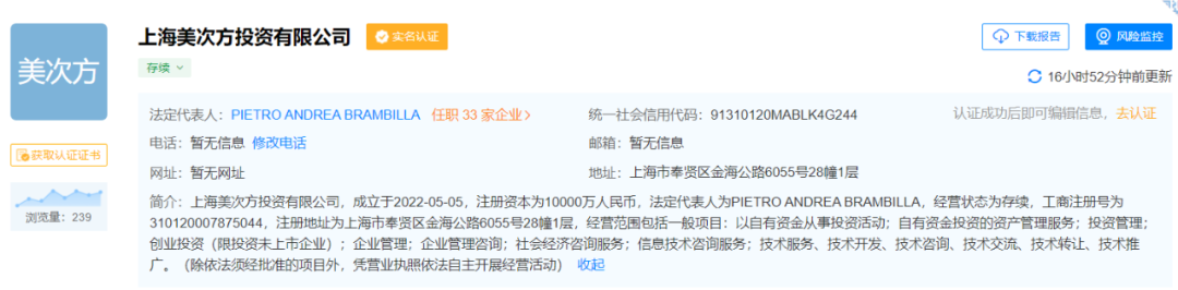 资生堂并不是个例。就在5月8日,另一国际美妆巨头欧莱雅正式宣布在中国市场设立首家投资公司——上海美次方投资有限公司(简称“美次方投资”),注册资本为1亿元人民币。