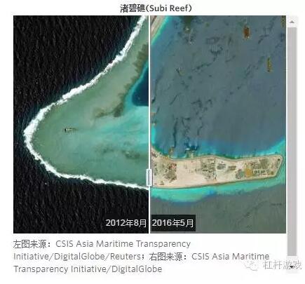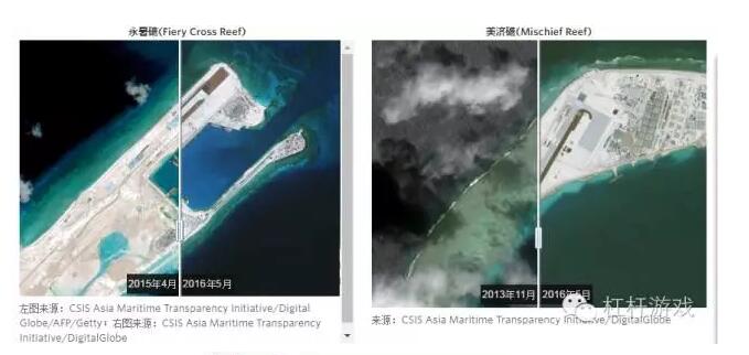 图2.我国在南海填海造岛卫星图比较