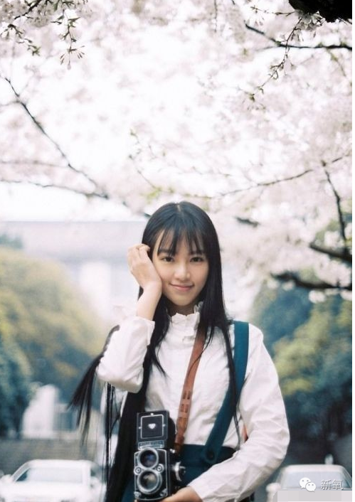 黄灿灿同样是因为一组写真出名,在武大校园、在樱花树下,微微一笑的样子很迷人。