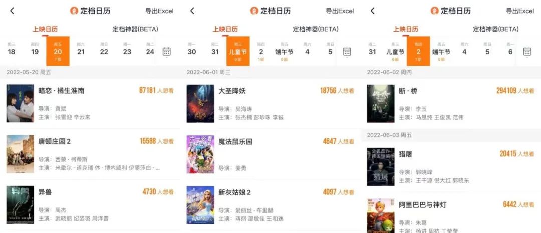 第二是要等待档期的到来,如接下来即将到来的520档、六一档、中等档期端午档,以及更远一些的暑期档,甚至国庆档。毕竟,档期所拥有的市场容量,是平日完全无法相比的。