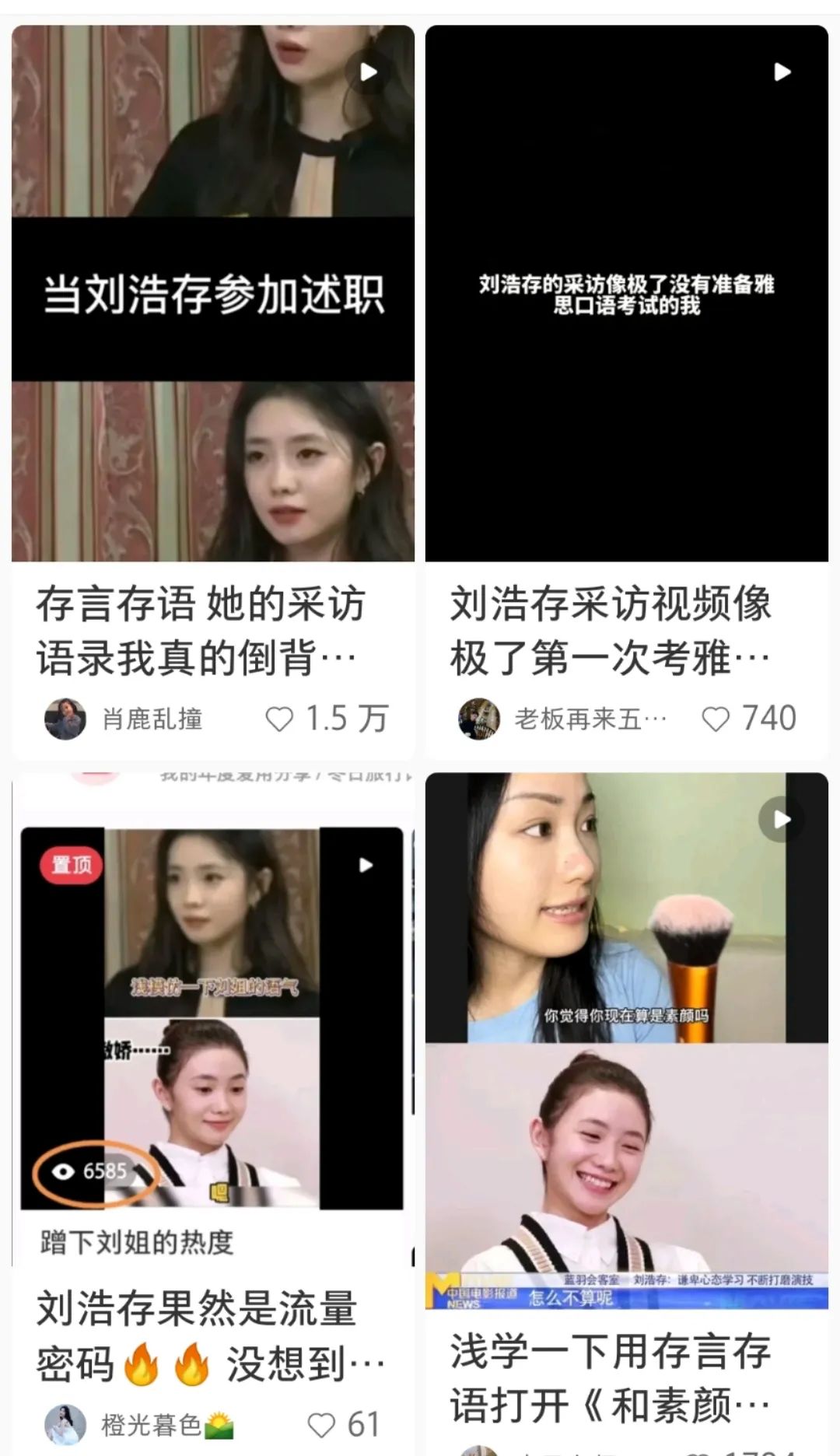 在B站、小红书,模仿刘浩存参加述职、考雅思口语、面试的UGC内容层出不穷,菜与不自知换个场域,就成了笑料。