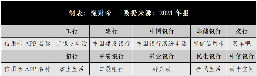 基于此,懂财帝在深入研究2021年财报后,选取了工商银行、建设银行、中国银行、邮储银行、交通银行、招商银行、平安银行、民生银行、兴业银行、中信银行10家商业银行的信用卡业务作为分析样本,试图为读者们呈现当前最真实的战况。