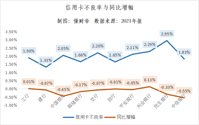 民生银行降幅为0.33个百分点,但其信用卡不良率却高达2.95%,体现出其内部仍存在巨大的风险管控压力。