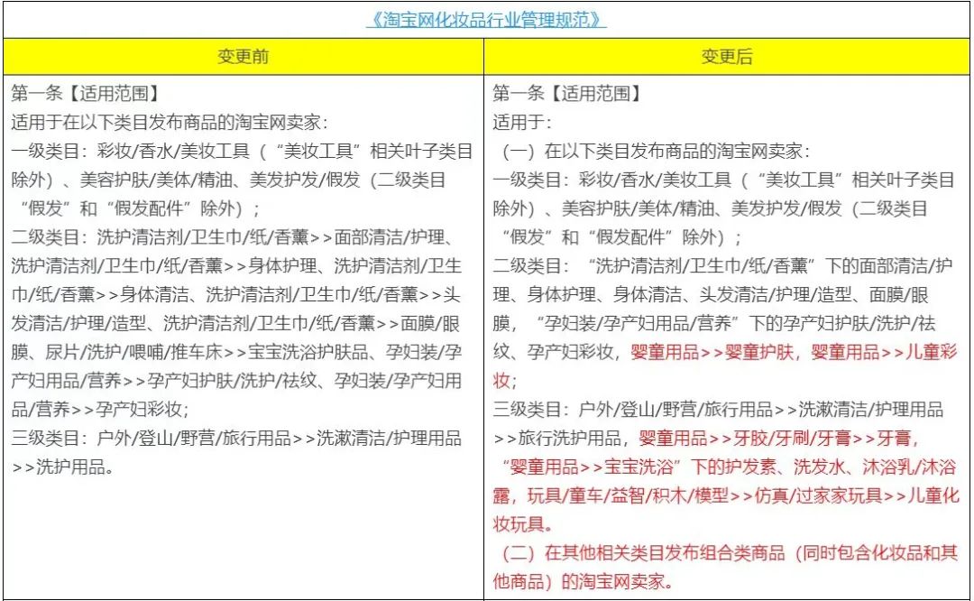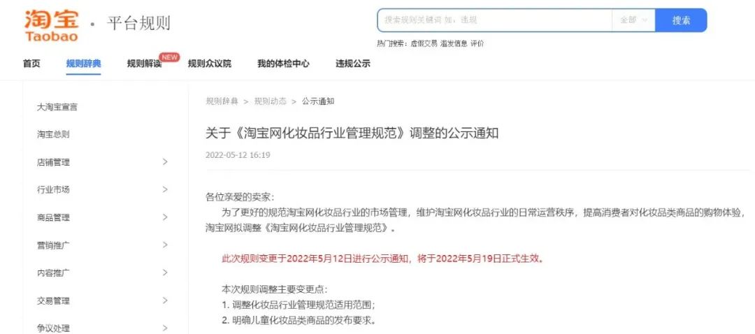 近日,淘宝网发布了关于《淘宝网化妆品行业管理规范》(下称《规范》)调整的公示通知。