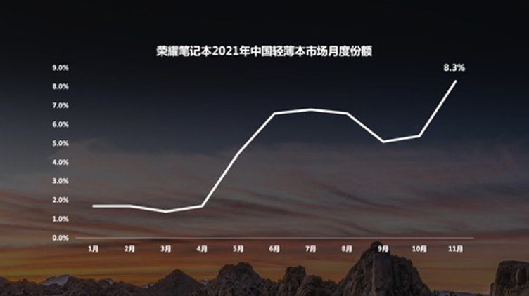 据GFK数据显示,截至2021年11月,荣耀笔记本在中国轻薄本的市场份额较2021年3月大幅增长6.9个百分点,达到8.3%。在2022年2月9日京东巅峰24小时,MagicBook X 15获轻薄本单品销量冠军。与华为切割的荣耀,在数据上似乎已经展示了自己重回巅峰的能力。