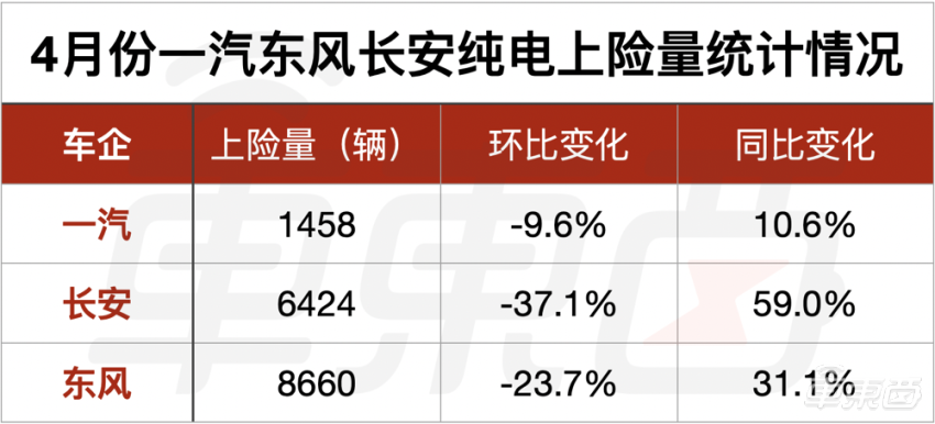 而一汽的表现并不算好,本月仅有1458辆纯电车型完成了上险登记。一汽总部所在地长春在4月份受到疫情的影响,但一汽的环比下滑仅为9.6%,而且与去年相比还增长了10.6%。这也说明了即使没有疫情影响,一汽的电动化转型也并不成功,整体销量和另外两家相比差距还非常明显。目前长安和东风都已经找到了自己的纯电转型之路。