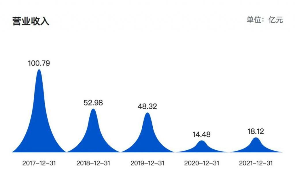 但借着小鹏代工订单续命的几年间,海马的营业收入依然逐年下滑,从2017年的100.79亿元跌到2021年只剩下18.12亿元。