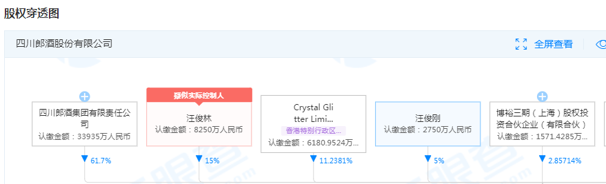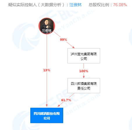 经过一番眼花缭乱的层层转让后,汪俊林成为郎酒股份的实控人。据天眼查数据显示,汪俊林虽说是第二大股东,但是总股权比例高达76.08%,是名副其实的“第一大股东”。