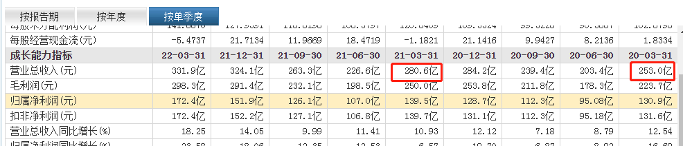 对此外界质疑郎酒的解释是,2020年一季度受疫情影响较大,导致公司营业收入和利润规模较小,而2021年疫情影响较小,加上高端酱香型白酒需求旺盛,导致公司营收同比大幅增加。