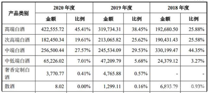 虽然和茅台没有可比性,郎酒还是侧重于高端发展的,从招股书的数据可以看出,报告期内高端白酒在郎酒总营收中占比越来越高,由2018年25.8%大幅提升至2020年的45.41%。