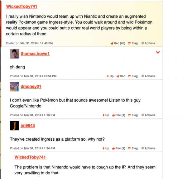 当时,甚至有一位网友提出了让任天堂和Niantic一起开发一款增强现实游戏的建议。只不过估计这位网友也没想到,两年后,任天堂真的发布了这样一款让宅男都没有理由继续宅下去的游戏。