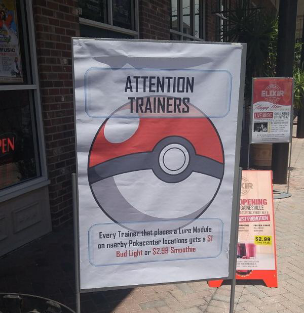 《Pokemon Go》有个功能叫 Lure Module,大家可能不甚了解。其实就是吸引模块,使用之后会有精灵被吸引过来,于是呢,有商家也打起了这个功能的主意~