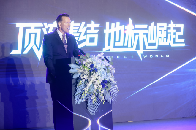 旭辉西南区域集团总裁贲宇先生对各界领导、嘉宾的到来表示欢迎和感谢,对项目的未来表达了充分的信心:旭辉西投·重庆之眼丨T-MAX是由重庆西投公司和旭辉集团共同开发的TOD项目,集合了全球三大顶流,致力于打造为高端商务新地标:法国迪士尼、拉斯维加斯百乐宫设计者——捷得设计打造元宇宙主题商业街区,金盘奖得主汇张思领衔项目建筑设计,以及国际五星级酒店--洲际皇冠假日的签约入驻,作为项目酒店集群的头部品牌,同时也是重庆首家高铁特等站上盖国际五星级酒店,致力于先行树立区域酒店产业的高起点与高标准。