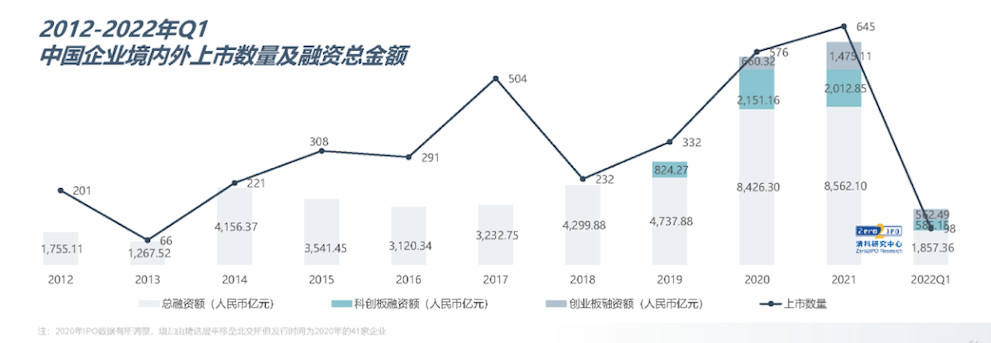 不久前,清科研究中心公布了一组数据——今年第一季度,全球通过IPO和企业债发行进行的融资规模降至2.3万亿美元,创下6年新低。而中企境外上市的整体表现也处于历史最低谷——2022年第一季度,中企境内外上市数量98家,同比下降32.4%。