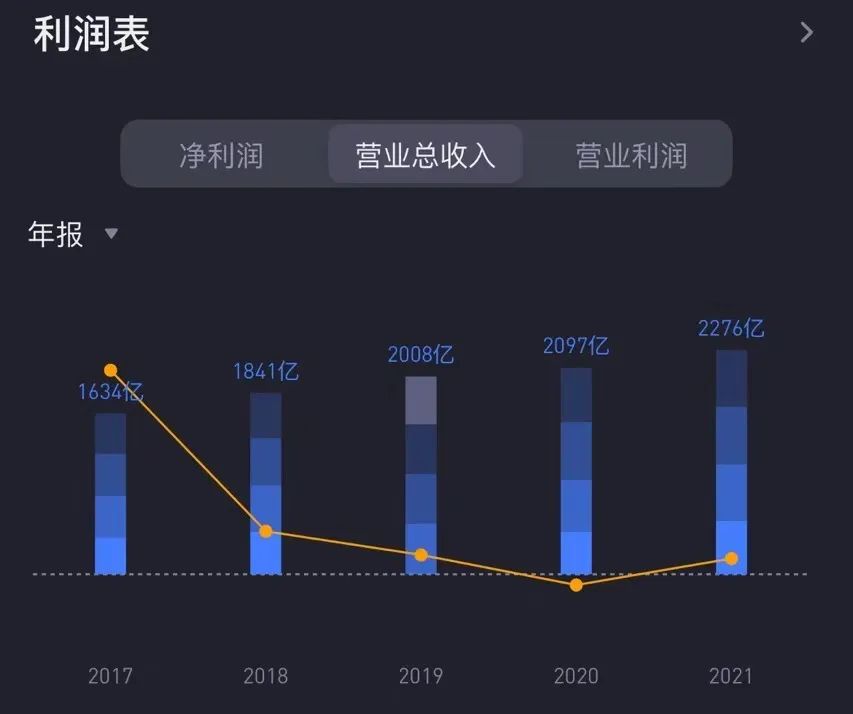 营收从2019年的2008亿元,增长至2021年的2275.5亿元,增幅13%。净利润从2019年的73亿元涨至2021年的132.7亿元,增幅约81%。