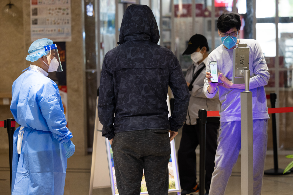 5月16日,在上海市徐汇区一家超市门店,市民扫码进店。 新华社记者 金立旺 摄