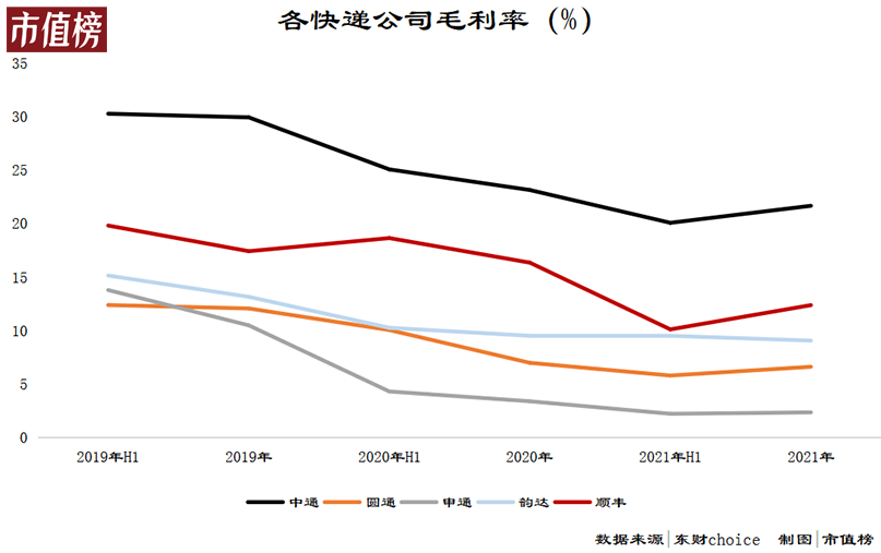 中通通过放弃低价亏损单,聚焦盈利件,叠加行业整体走出价格战,最终全年毛利率回升至21.67%,没有大幅度下滑。
