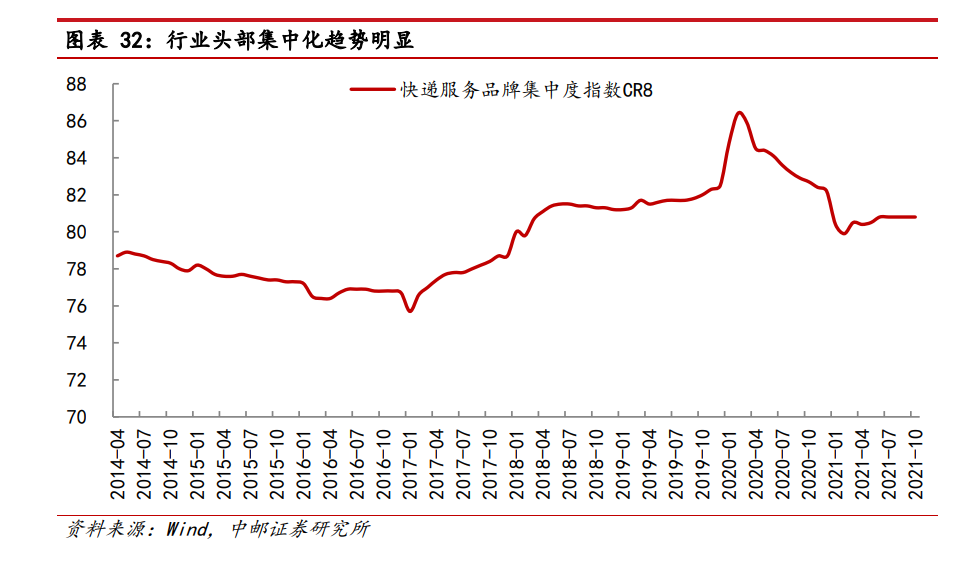 当前我国的快递公司CR8在80%以上,正处于从集中向寡头垄断的进程中。在此过程中,并购是一剂催化药物,价格战也可能相伴而生。