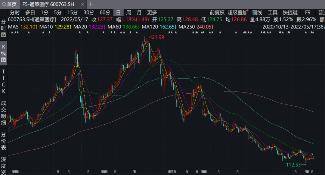作为国内口腔医疗服务龙头,通策医疗一度备受市场追捧,股价在2017年-2021年期间创下了超过17倍的最高涨幅,市值一度超过1300亿元。但近一年来,通策医疗股价出现大幅回落,截至今年5月17日收盘,通策医疗收于127.37元/股,总市值408亿元。