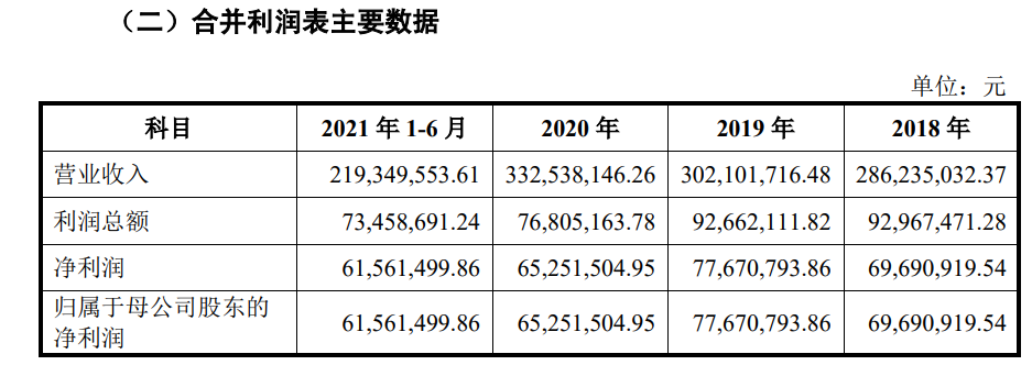 招股书显示,冰峰饮料2018年至2021年上半年的营业收入分别为2.86亿元、3.02亿元、3.33亿元和2.19亿元,同期归母净利润分别为6969万元、7767万元、6525万元、6156万元。