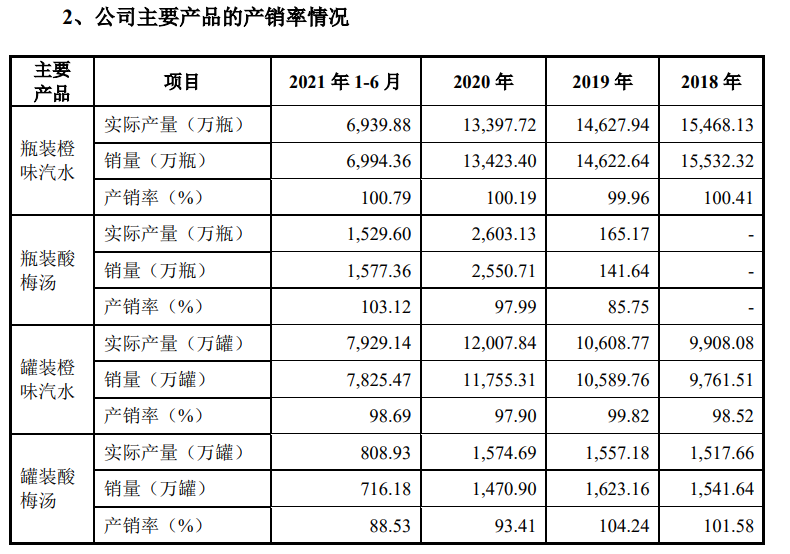 至于冰峰饮料的单品依赖,则主要体现在橙味汽水产品上。据招股书,冰峰饮料玻璃瓶橙味汽水和灌装橙味汽水,近几年长期维持在80%上下。