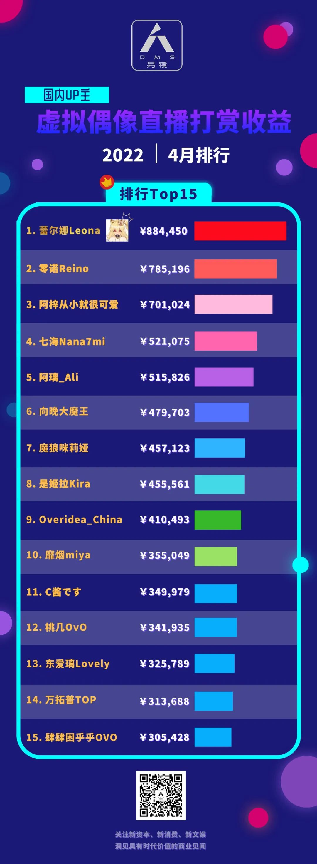 而根据虚拟主播数据网站darkflame公布数据,今年4月国内虚拟主播Top 15总营收为720.23万元,而同期海外VTuber Top 15营收为99.52万美元(约合人民币676.53万元),低于B站Top 15虚拟主播的营收。