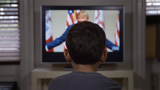 希拉里最新的广告片就想告诉美国人民:选特朗普这种人做总统?他会教坏小朋友的!