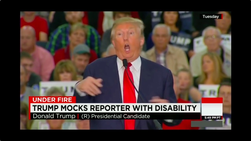 时常口出狂言的特朗普,这次在60秒片子里被节选了几段金句,包括自带消音功能的脏话,“我站在第五大道随便开枪射几个人也不会失去任何选民”,“墨西哥移民带来犯罪和吸毒问题,他们还是强奸犯”,以及动作滑稽地在模仿嘲讽一个有身体残疾的记者。