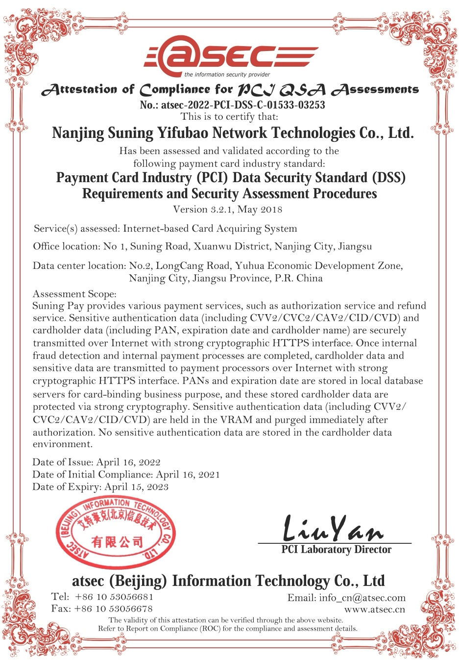 此次苏宁跨境支付获得认证,通过了涵盖6大领域、12项规范,包含网络安全、应用和系统安全等方面的近300项审核指标,意味着苏宁跨境支付的支付能力及技术已经达到国际领先水平。