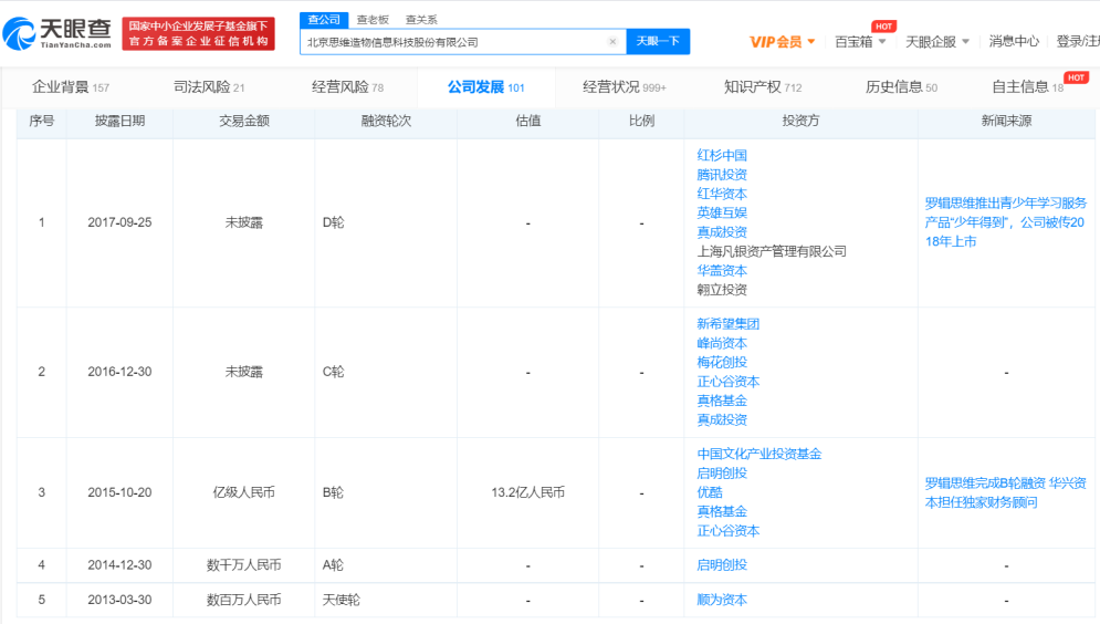 期间,资本市场的目光也投了过来,2014年-2017年,思维造物完成四轮融资,投资方中出现了真格基金、红杉中国、腾讯投资等知名投资机构的身影。2018年,公司开始被传上市。