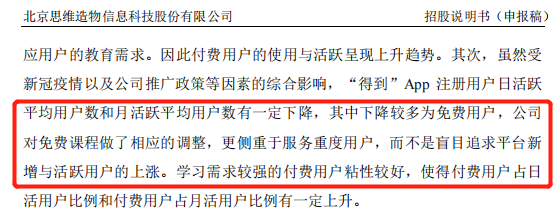 对于用户数量下滑,招股书解释称是公司推广政策以及用户行为变化等因素的影响。2018年,公司赞助《最强大脑》,取得了较好的推广效果,积累了大规模用户。但2019年,公司减少该类营销活动,尽管有效地控制了渠道及推广费用,但也直接影响新增注册用户数下降41.68%,充值用户数量更是大减50.19%。2020年,App免费专栏改版,平均月活用户再次下降。