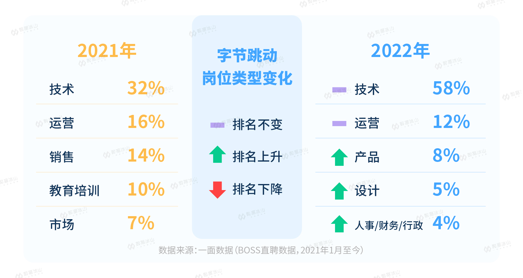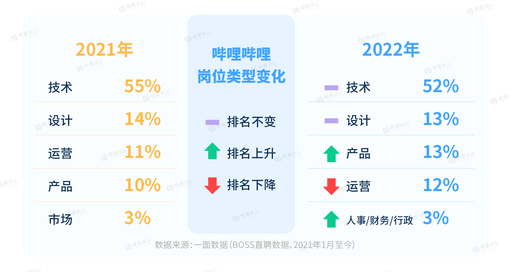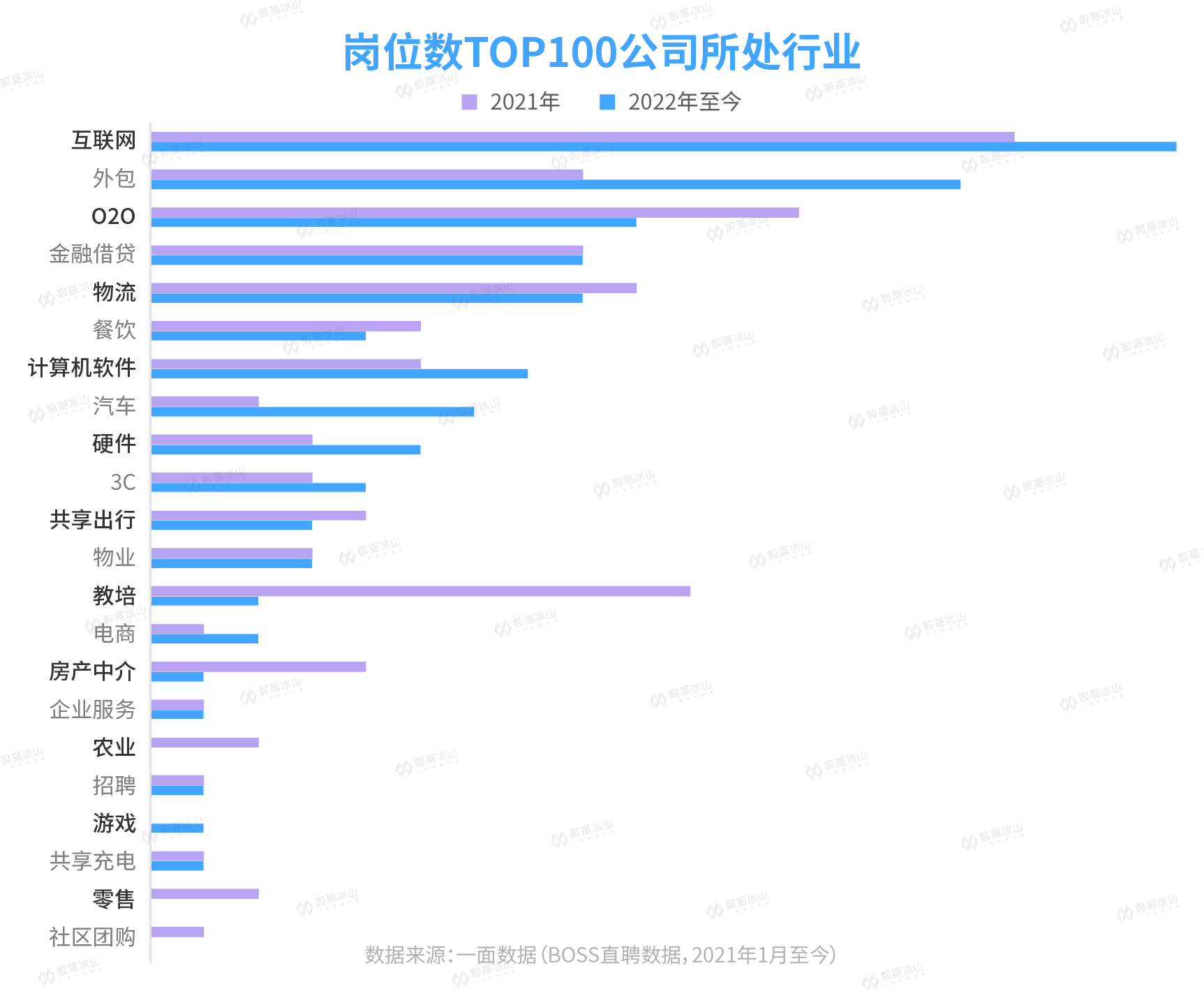 冰山君对BOSS直聘上超过3000万个职位进行了跟踪,对比了2021年和2022年的变化。