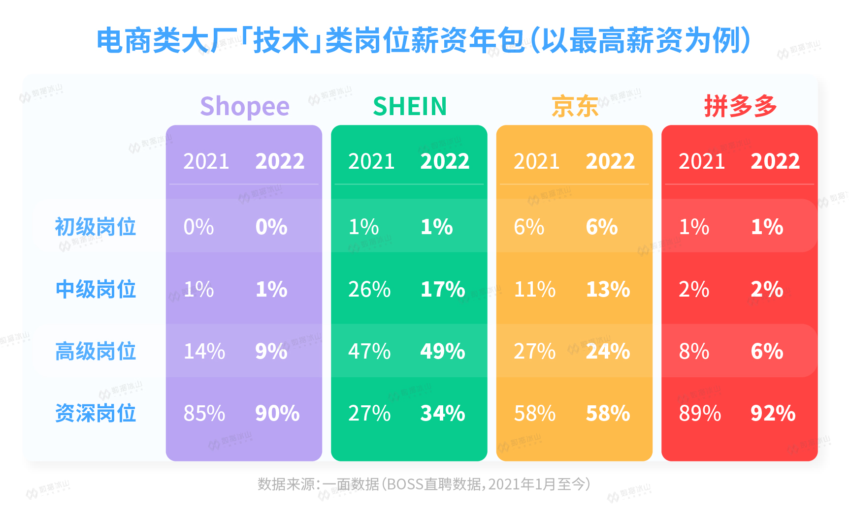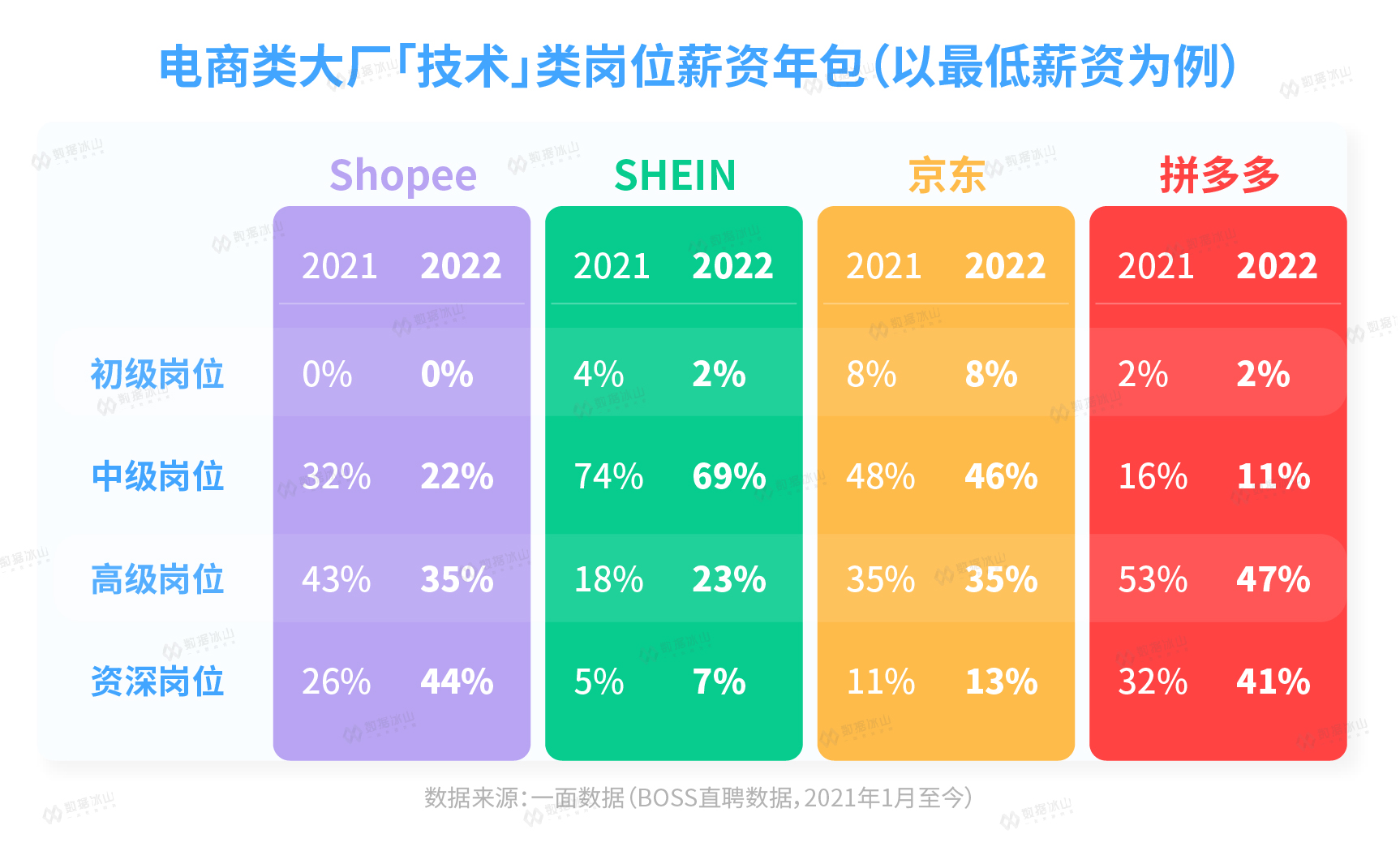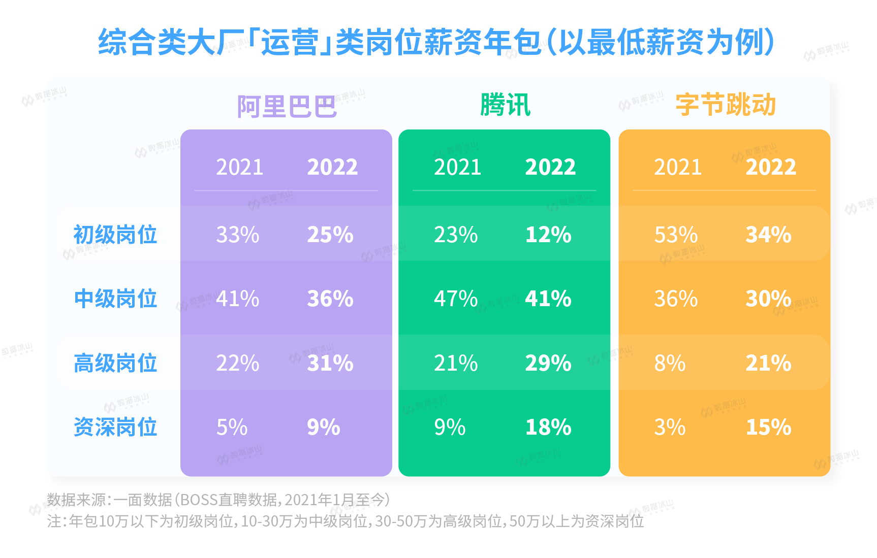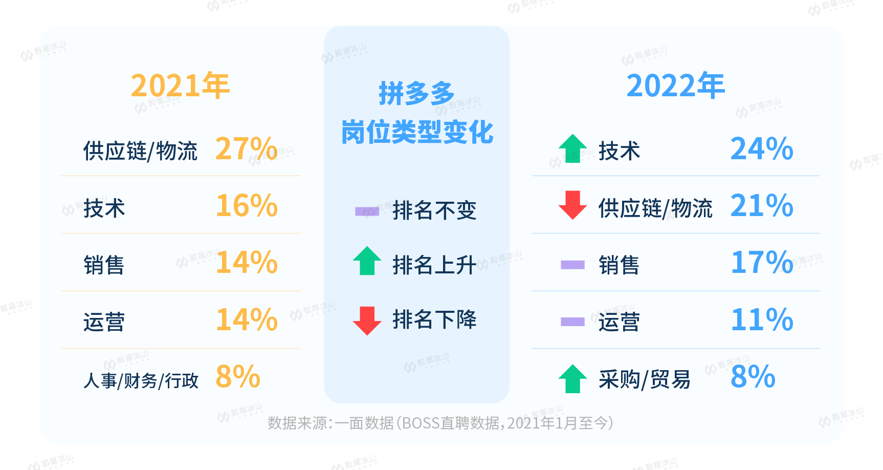 冰山君对BOSS直聘上超过3000万个职位进行了跟踪,对比了2021年和2022年的变化。