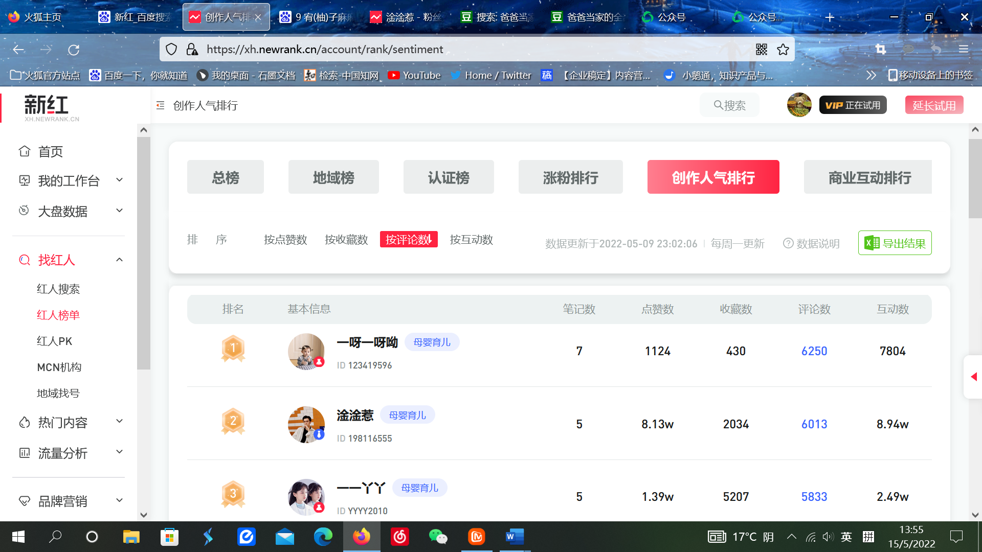 4月以来,小红书上,一个叫“淦淦惹”的博主忽然蹿红,仅用了一个多月的时间就跻身母婴育儿垂类红人榜前十名,其评论量与点赞量更是占据该类创作人气排行周榜全网前五名,展示出了不凡的潜力。