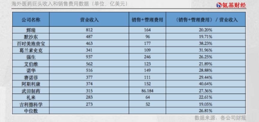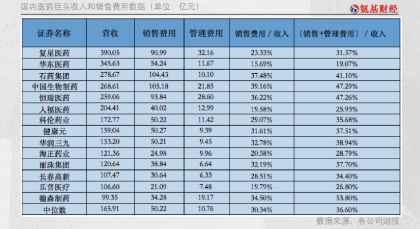 在统计了恒瑞医药、中国生物制药为代表的15家中国传统药企巨头后,得出销售费用与管理费用在营收中的比值为19%-56%。
