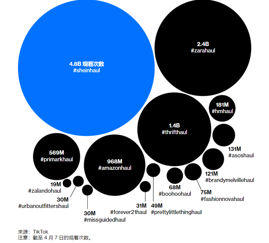 图/TikTok上,SHEIN购物车视频浏览量最高,来源/燃财经截图
