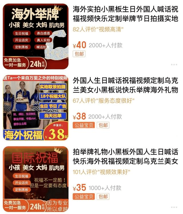 一些心思活络的海外华人由此挖掘出了商机,他们开始在各地招募土著,打造具有地方特色的喊话团队,再在电商平台上开办专门承接“海外喊话祝福”业务的网店。