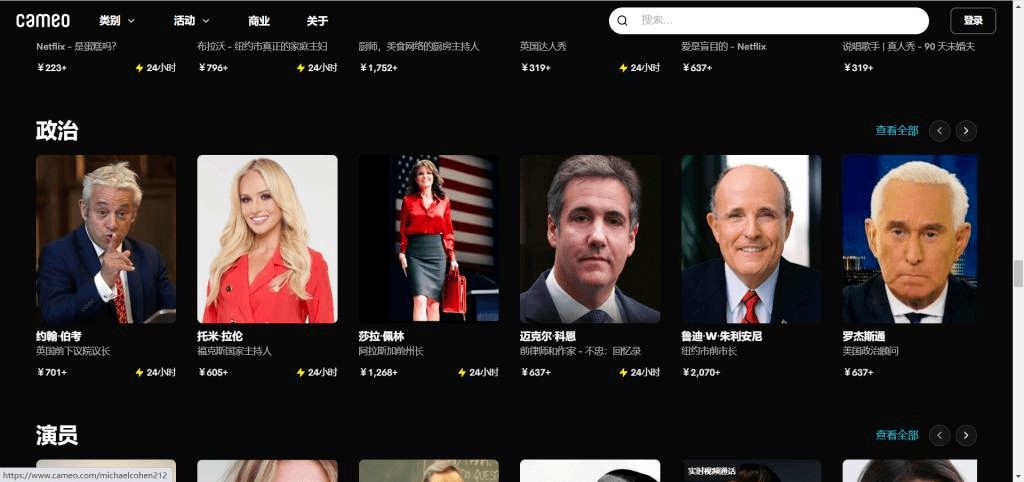 视频的订单就是在名人喊话视频平台Cameo上成交的。这是美国人Steven Galanis于2017年创办的项目,已经吸引了超过4万“名人”入驻,平台年交易额超过1亿美元。