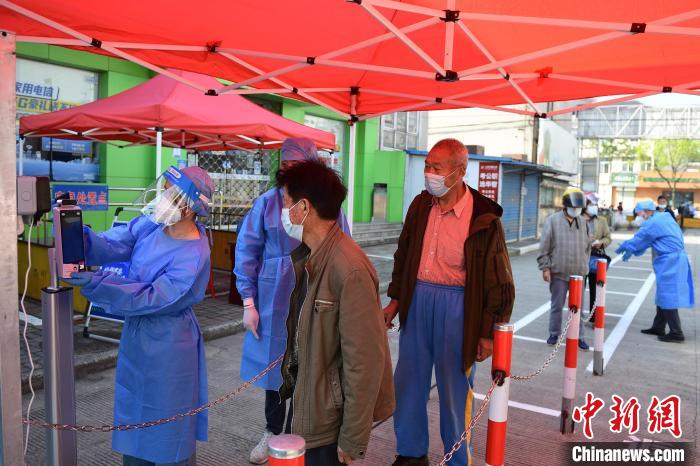上海崇明庙镇居民正有序排队入场 田雨昊 摄