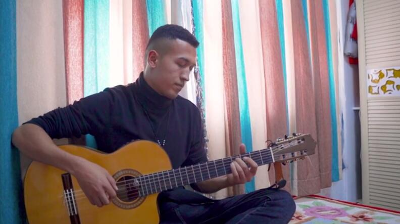 艾力库提·艾尔肯来自新疆若羌县,目前在新疆艺术学院学习十二木卡姆。