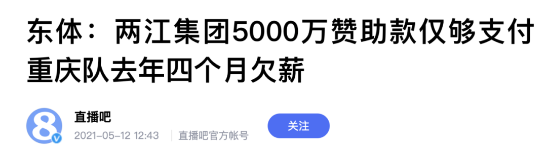 但随后又曝出,两江集团5000万赞助款,仅够支付重庆队前一年的四个月欠薪。现在来看,传言应该非虚。