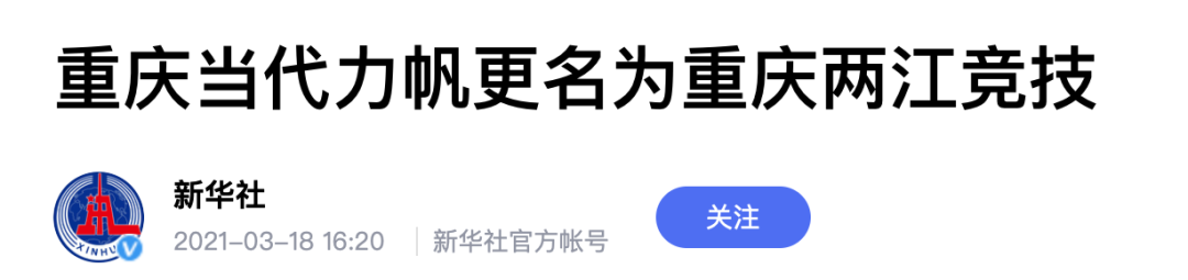 2021年3月18日,按照“中性化”要求,重庆当代力帆足球俱乐部更名为重庆两江竞技足球俱乐部。