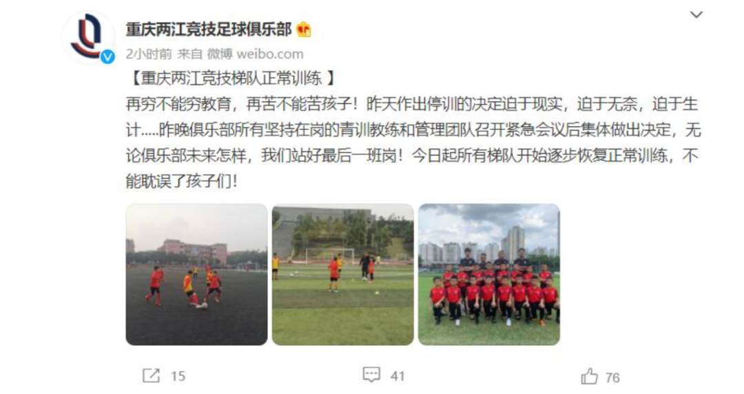 最近传得沸沸扬扬的重庆两江竞技足球俱乐部停训一事,被坐实了。