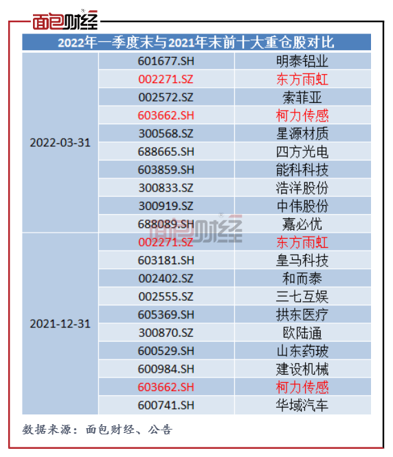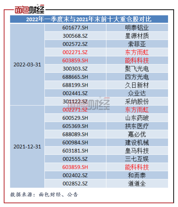 图4:宝盈优势产业2022年一季度末与2021年末前十大重仓股对比