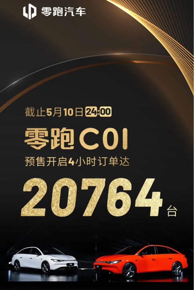 如果说产品质量问题考验的是一家车企的造车硬实力,那么营销宣传,考验的则是软实力。遗憾的是,在软实力搭建层面,零跑汽车的做法一样令人玩味。零跑C01在5月10日正式开启预售后,打出了“预售4小时,订单20764辆”的宣传海报,和曾经的零跑C11一样,这样的数据到底有多少水分,我们尚不得而知。